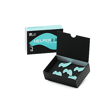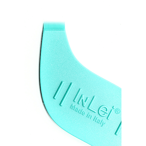 De zijde met de tanden maakt het mogelijk elke wimper goed van de andere te scheiden, zodat de juiste richting wordt aangegeven. De platte kant helpt om de juiste spanning aan elk haar te geven. De Helper is de troefkaart van alle InLei® trainers omdat het ontwerp tot in het kleinste detail doordacht is om het werk van de styliste zo gemakkelijk mogelijk te maken.
